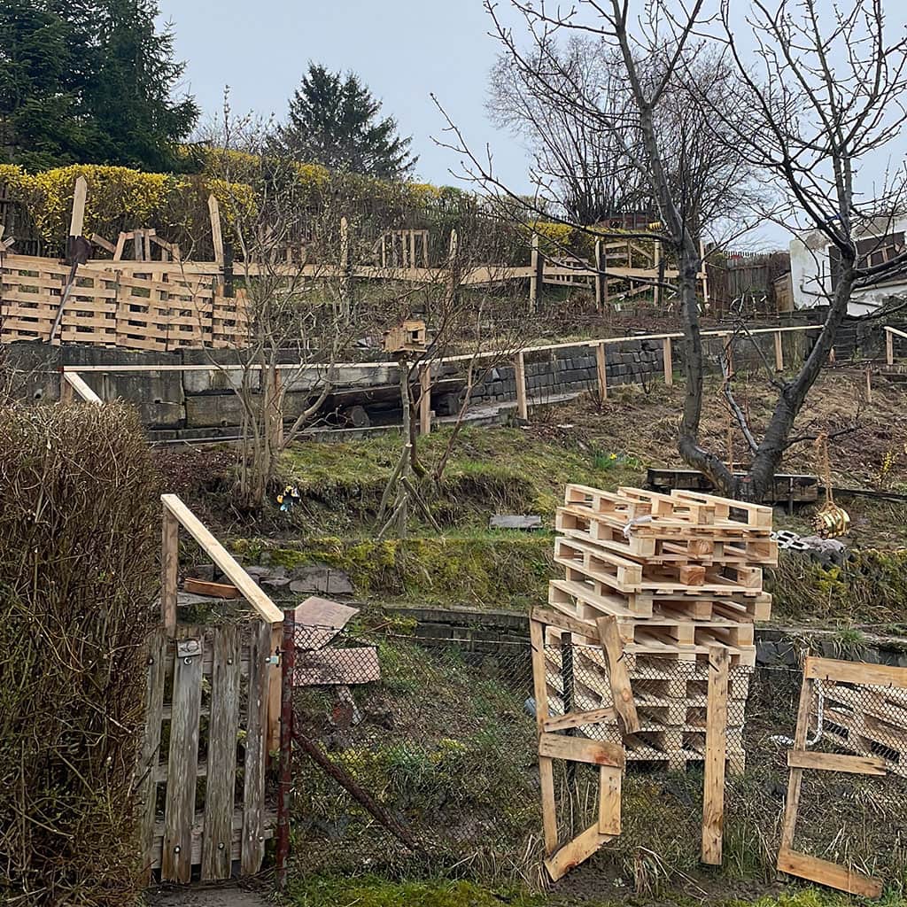 Es wurde ein Bienenpfad für die Kinder angelegt. Damit dieser sicher von den Kindern begangen werden kann, wurden in einem Kraftakt die Treppenstufen angehoben. Jetzt können die Kinder den Pfad sicher begehen. Der neu angebrachte Handlauf kommt noch als Highlight hinzu.